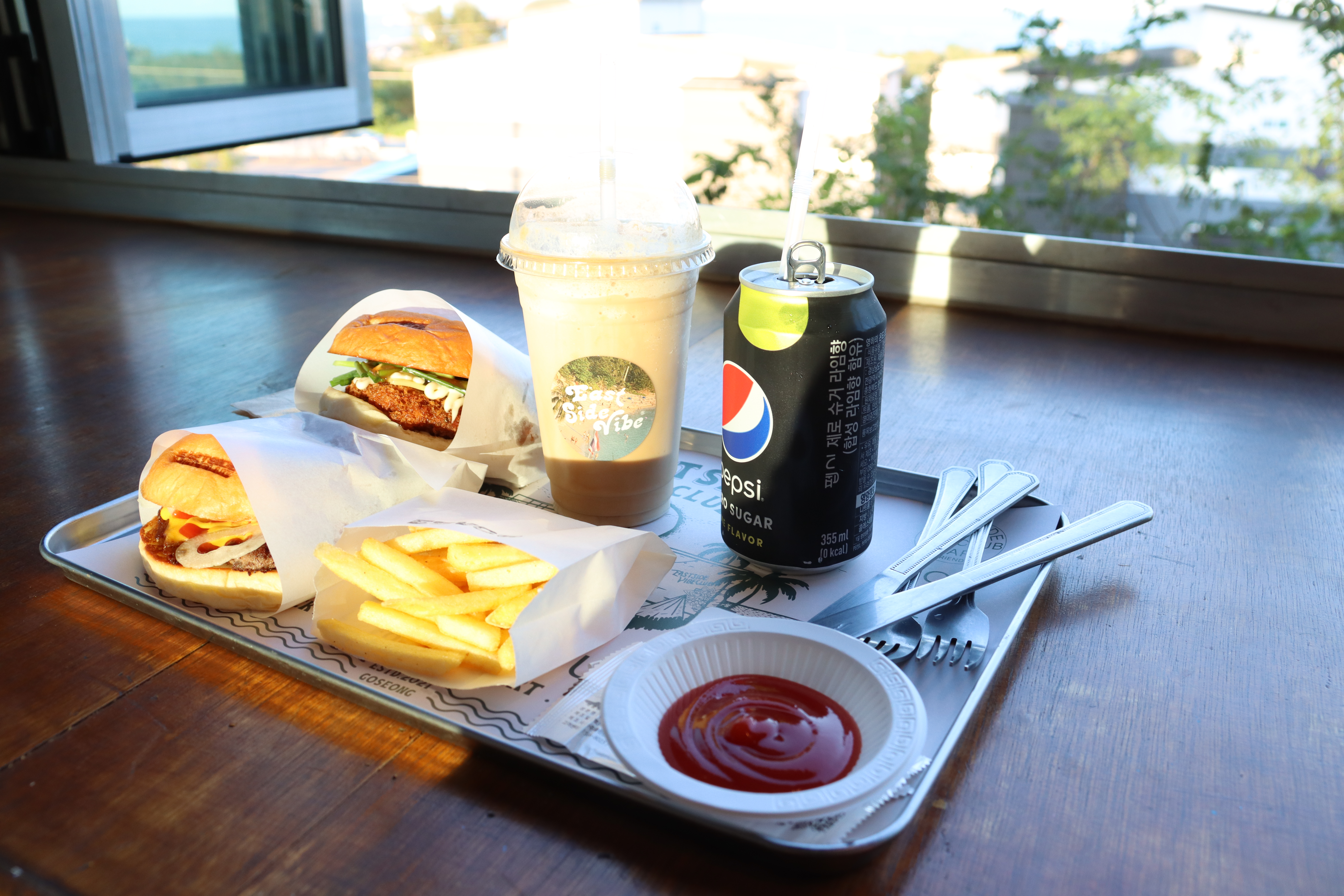 자주 가던 속초 비치버거에 비해 크기는 조금 작다는 느낌이 들었다. 우리는 서로 '크기가 작네' 라는 말을 동시에 내뱉으면서 평소에 잘 맞지도 않던 텔레파시가 통했다.