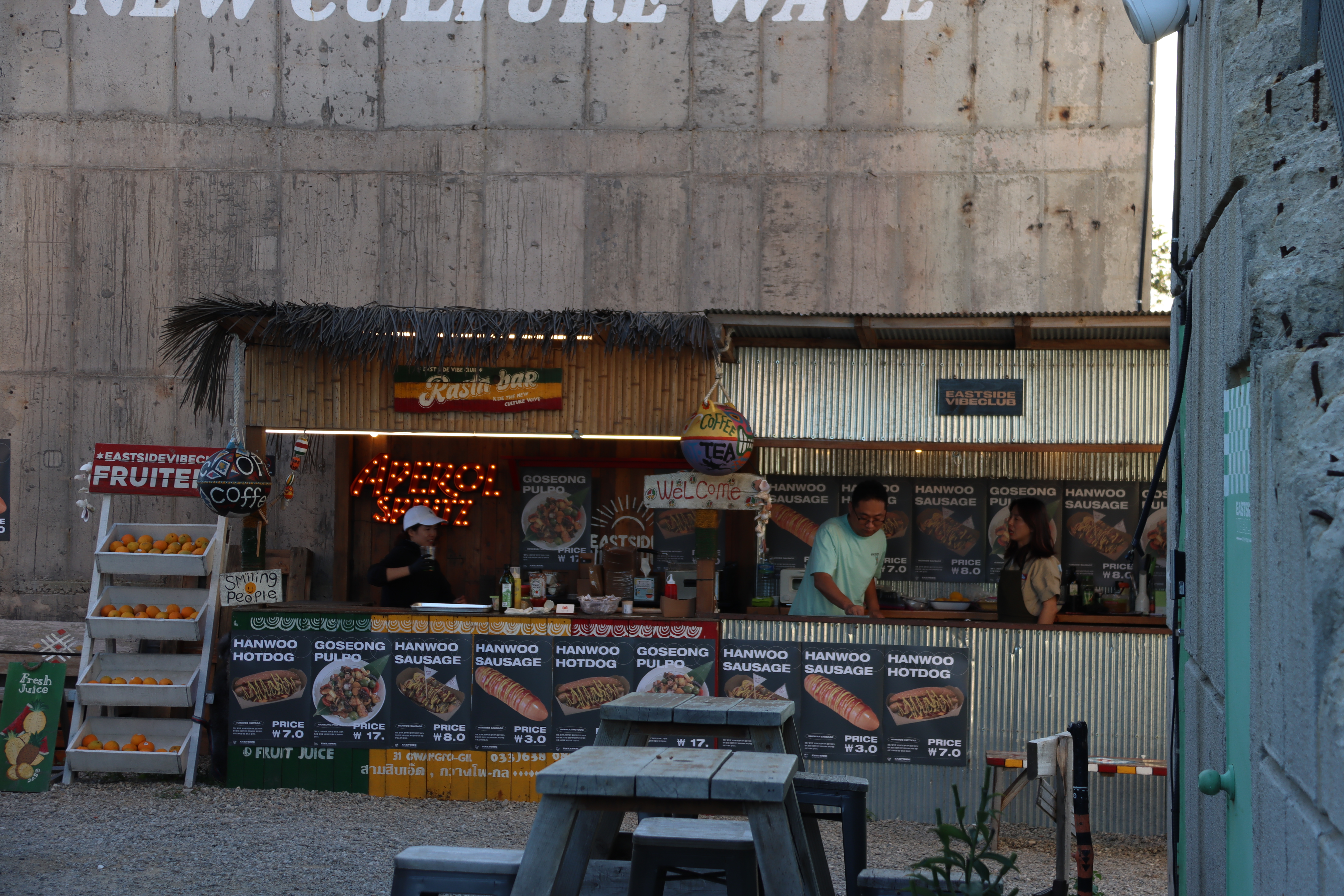 힙한 분위기와 어우러진 짓다만 가건물을 개조해서인지 주변에는 한국이 아닌 다른 나라에 온 듯한 분위기를 자아내었다. 특히 이곳에서는 야외행사를 치루고 있었는데 딱 보아하니 젊은이들이 한데 모여서 춤을 추면서 술을 마시면서 즐기는 그런 클럽같은 행사장이 눈에 띄었다.