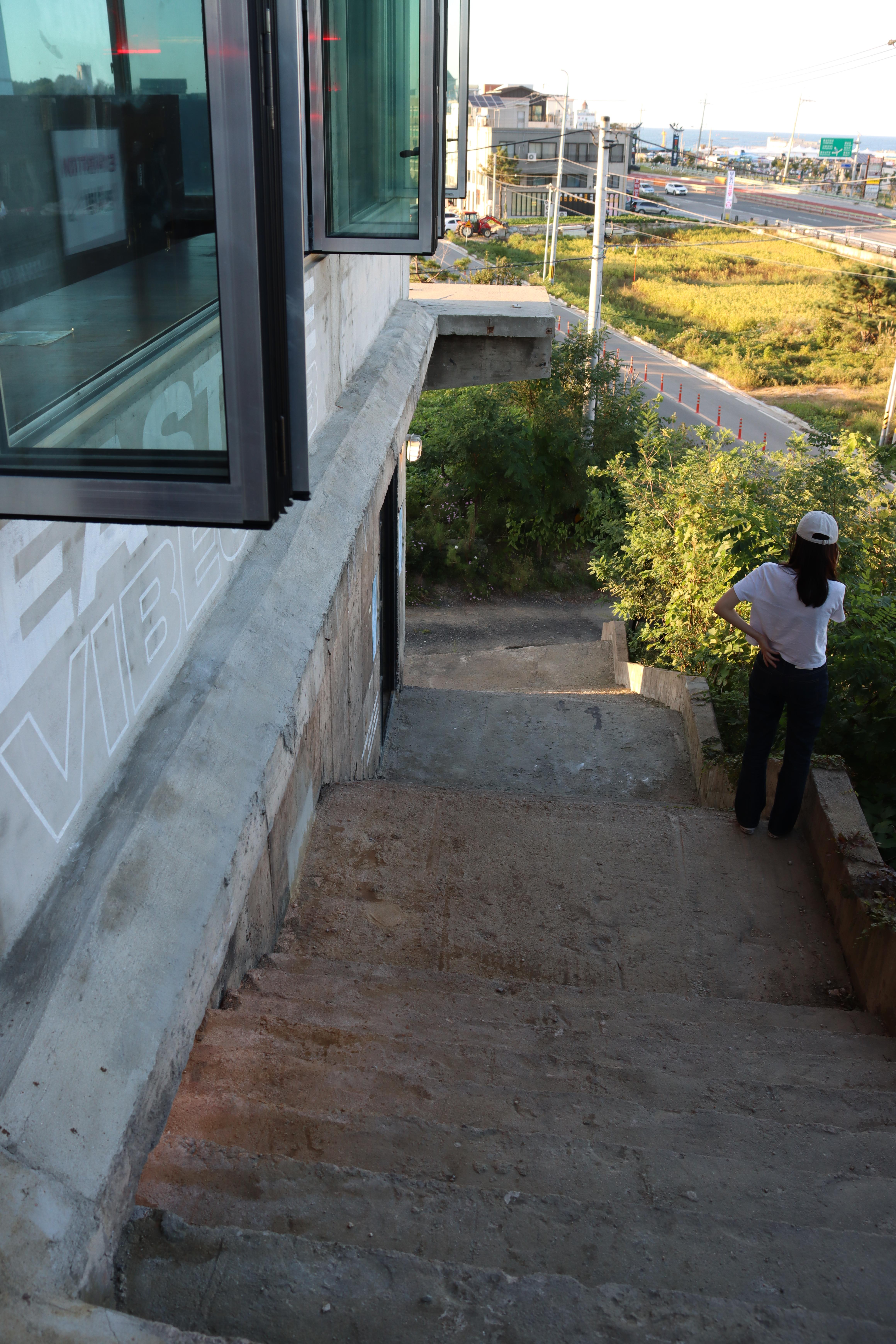 고성바다의 언덕배기에 위치한 빈티지하면서 으스스한 분위기가 물씬 풍기는 이스트사이드 바이브클럽은 외관은 무서우면서도 덜 완성된 그런 느낌을 주지만 사실 이 느낌을 컨셉으로 삼고 있는 곳이기에 전혀 괴리감이 들지 않는다.