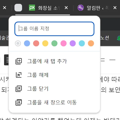 탭을 그룹화 하여 사용할 수 있는 기능이 크롬과 엣지 브라우저에 있다. 이 기능은 탭이 많이 있을 경우 묶어서 관리를 할 수 있는 것인데 두 브라우저는 동일하게 작동하며 동일한 경험을 제공하기에 더 언급하지는 않겠다.