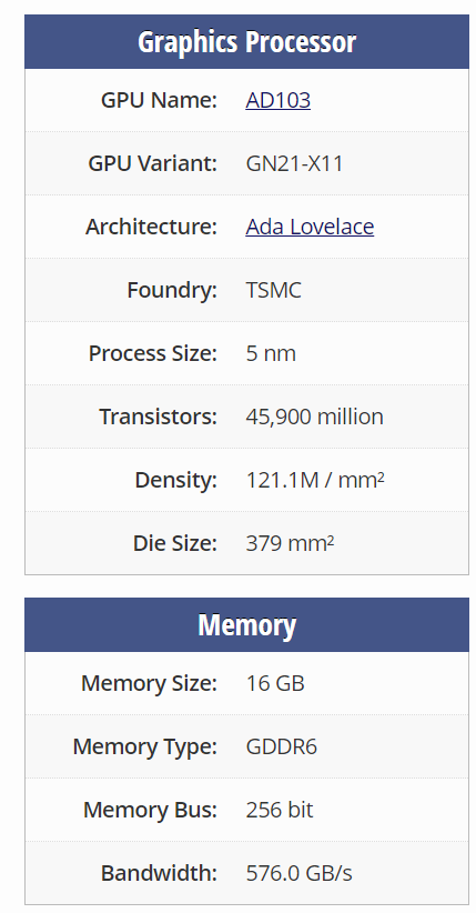 기본 정보 5nm 공정과 AD103 그래픽 프로세서