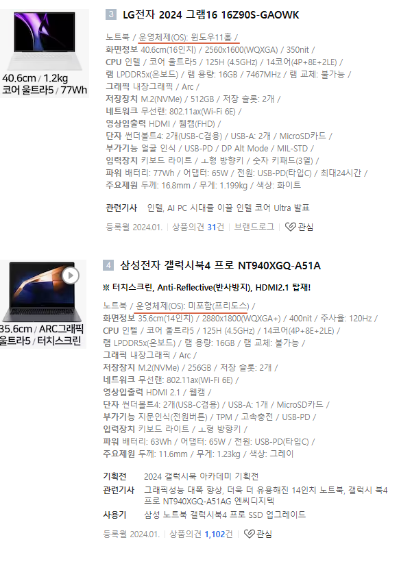 처음에는 해당 부품에 대해서 설명하며 요약본은 어떤 제품을 구매해야 할지 딱 정해놓은 항목입니다. 이 글을 보시면서 다나와에서 구분하여 보시면 딱 좋은 노트북을 고르실 수 있습니다.