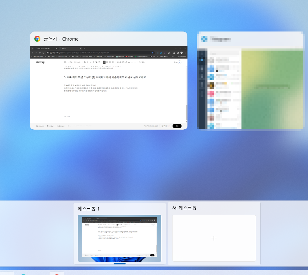 노트북 여러 화면 띄우기 (2) 트랙패드에서 세손가락으로 위로 올려보세요