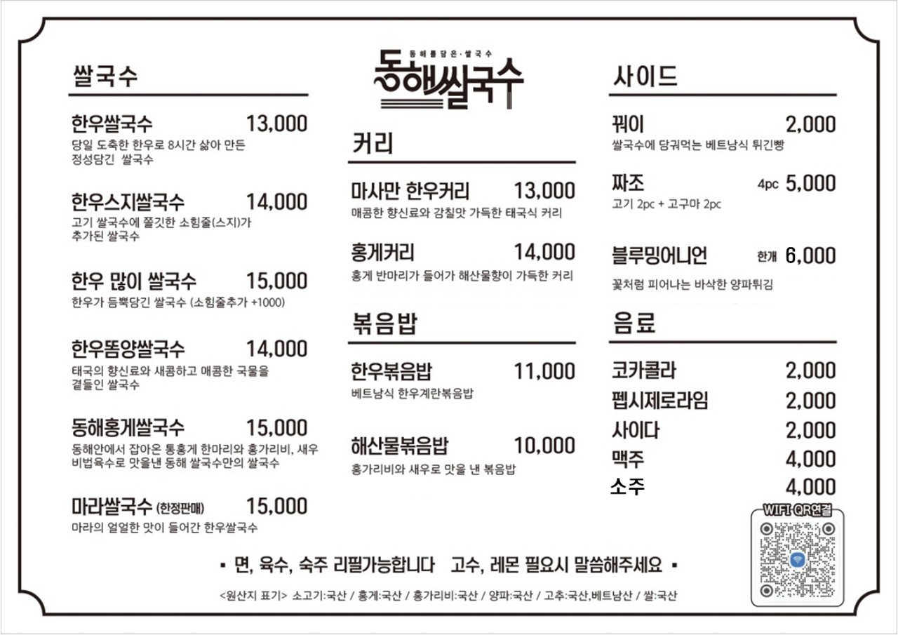 동해쌀국수 메뉴