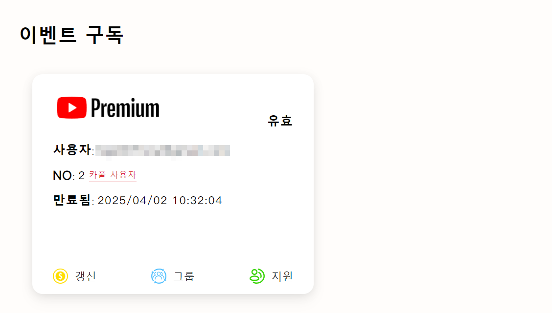 6) 결제를 완료하게 되면 구독항목을 클릭하셔서 현재 구독하고 있는 서비스를 확인하실 수 있습니다.