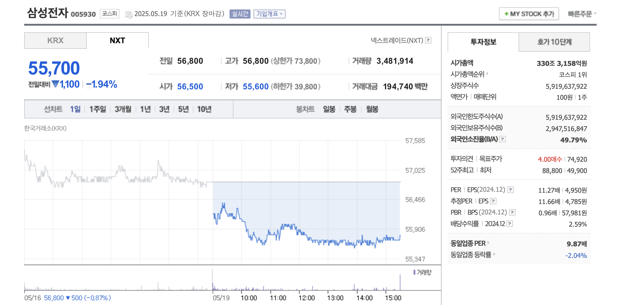 - 외국인 보유 비율: 49.79%