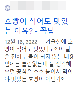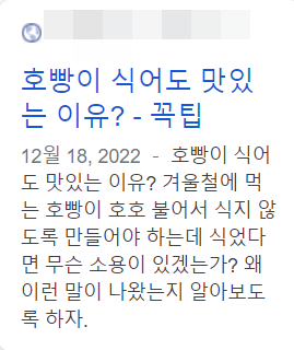호빵이 식어도 맛있는 이유에 대해서 글을 작성하려고 한다. 아래의 예시를 살펴보면서 구글 SEO에 가장 적합한 문장을 찾아보는 것이다. 물론 둘다 120자 이내는 지켜냈다.
