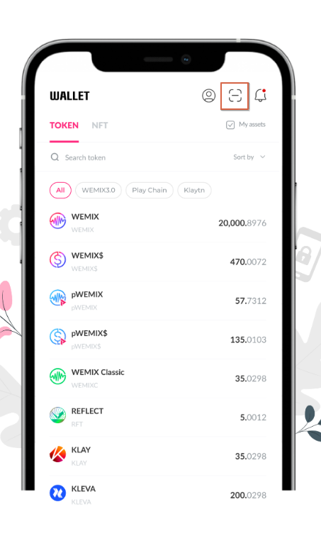 1) 스마트폰에 있는 플레이 월렛에 있는 큐알 스캔 버튼을 클릭한다.