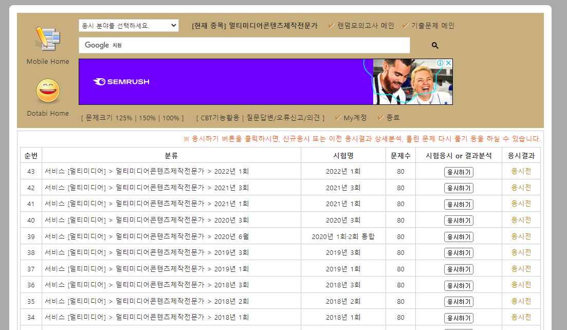 이 사이트가 좋은 점은 바로 기출문제를 마구잡이로 섞어준다는 점이다. 덕분에 2002년부터 시작해 약 100회정도 풀어보니까 평균 78점이라는 점수를 획득할 수 있었다.