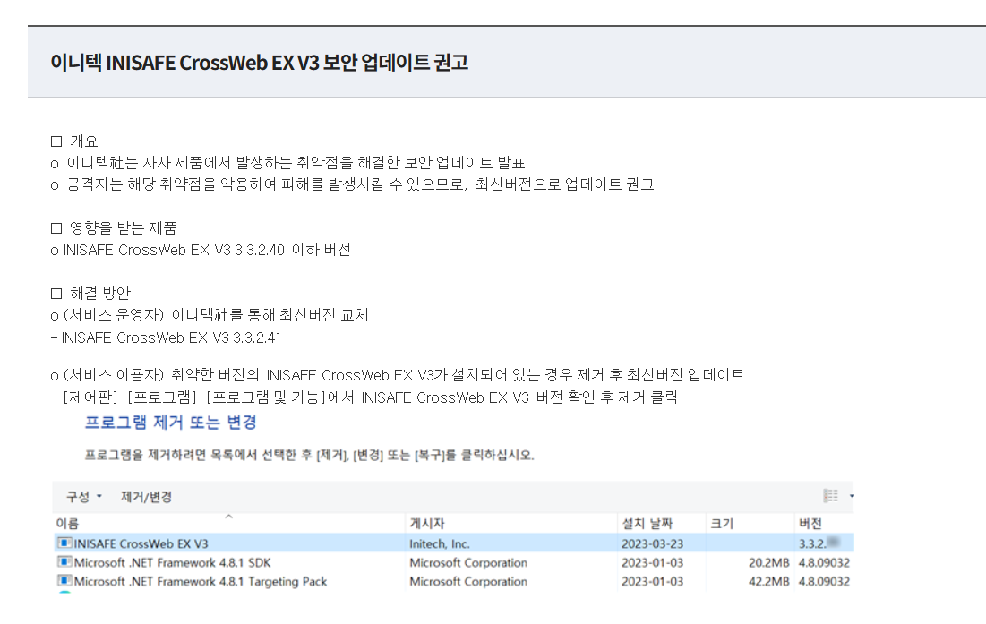 inisafe(이니세이프) 삭제 방법과 패치 방법은