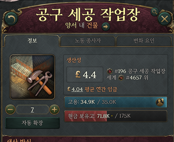 참고로 빅토리아 3에서는 무역수지를 관리를 해야 하는데 그 이유는 사업주가 이득이 되지 않으면 고용을 하지 않기 때문이다. 고용이 없으면 수지가 창출되지 못하는 현상이 발생하게 되므로 적절하게 수지를 관리해야 한다. 아래의 사진을 보도록 하자.