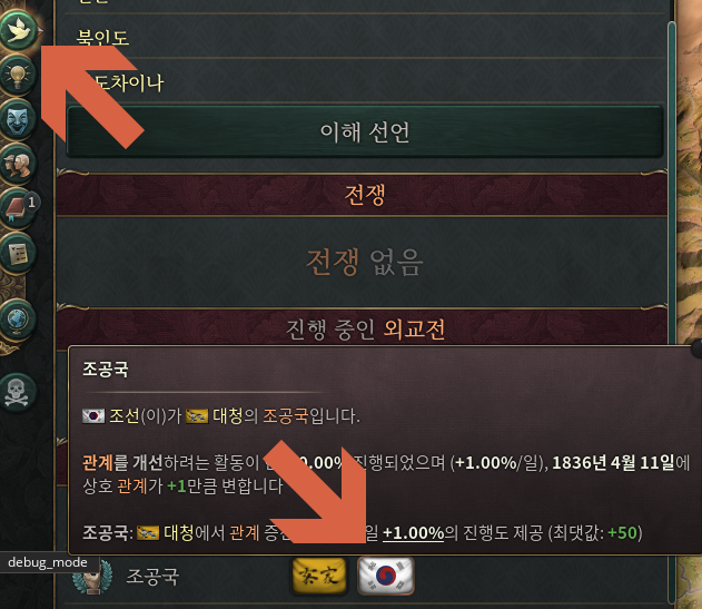 3) 독립승인이라는 항목을 클릭한 후 다시 국가 변경을 통해 조선으로 돌아온다.