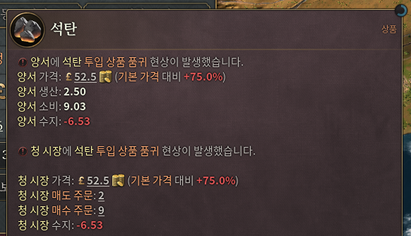 보면 알겠지만 석탄이 투입 상품 품귀 현상이 발생했다. 이럴때에는 석탄을 기반으로 하는 제조업에 영향이 갈 수 밖에 없는데 물론 석탄 사업은 엄청난 이득을 보겠지만 산업전반적으로는 마이너스다. 여기서 수지관리의 포인트가 등장하게 되는데 바로 투입상품품귀를 없앨만큼 생산량을 늘리는 것이다.