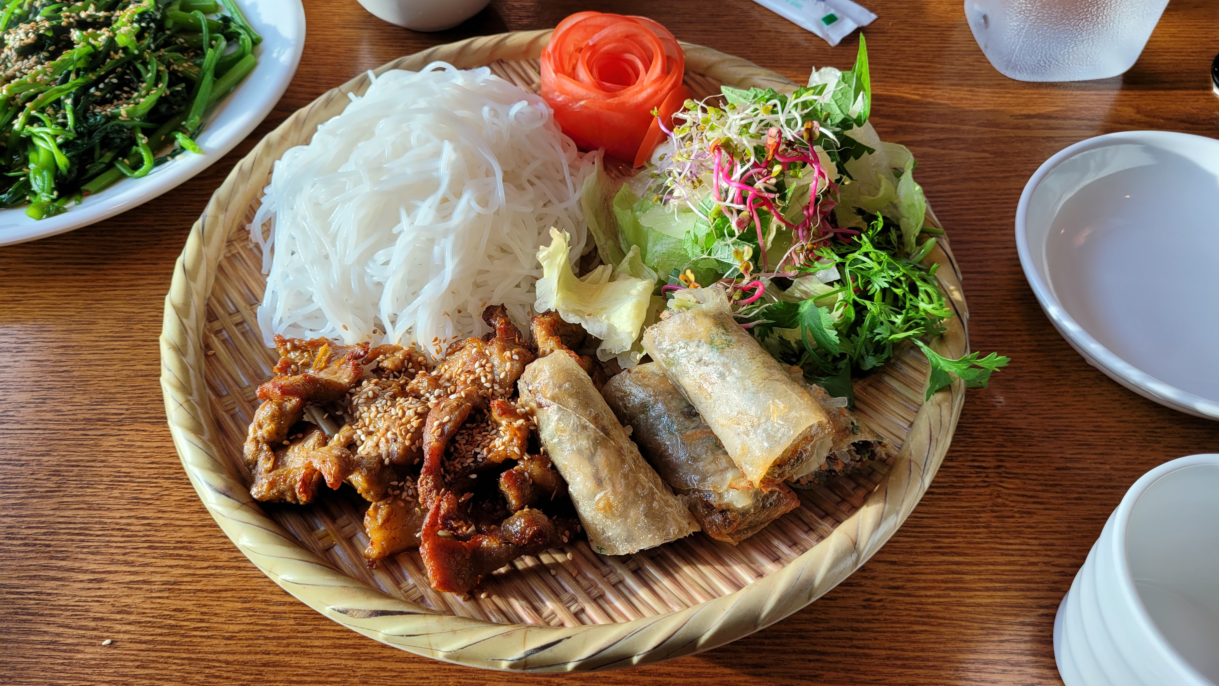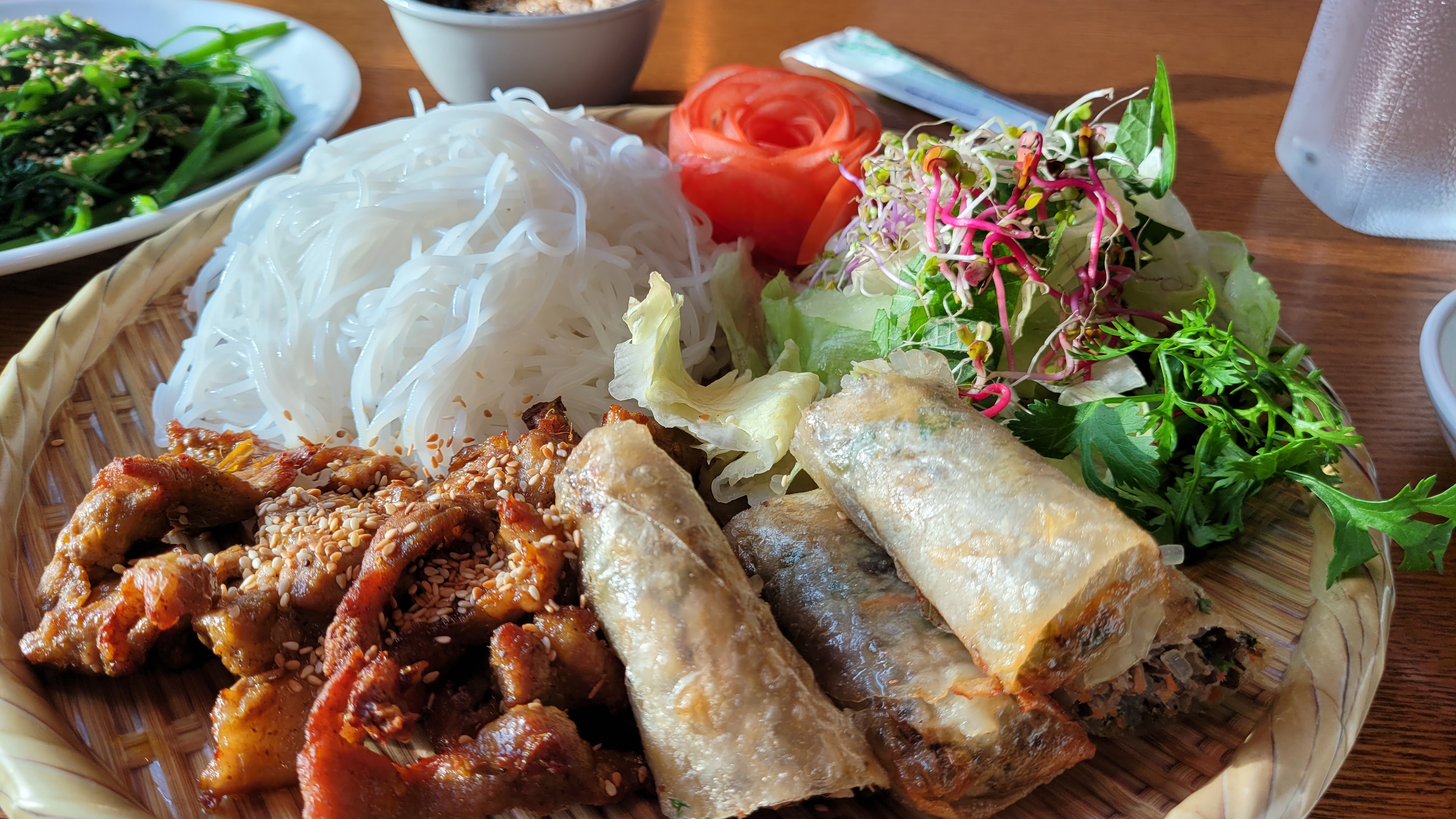공심채와 특히 짜조를 함께 먹으면 맛있었고 분짜에 있는 야채가 다 떨어졌을 때 돼지고기와 함께 곁들여 먹으면 금상첨화다.