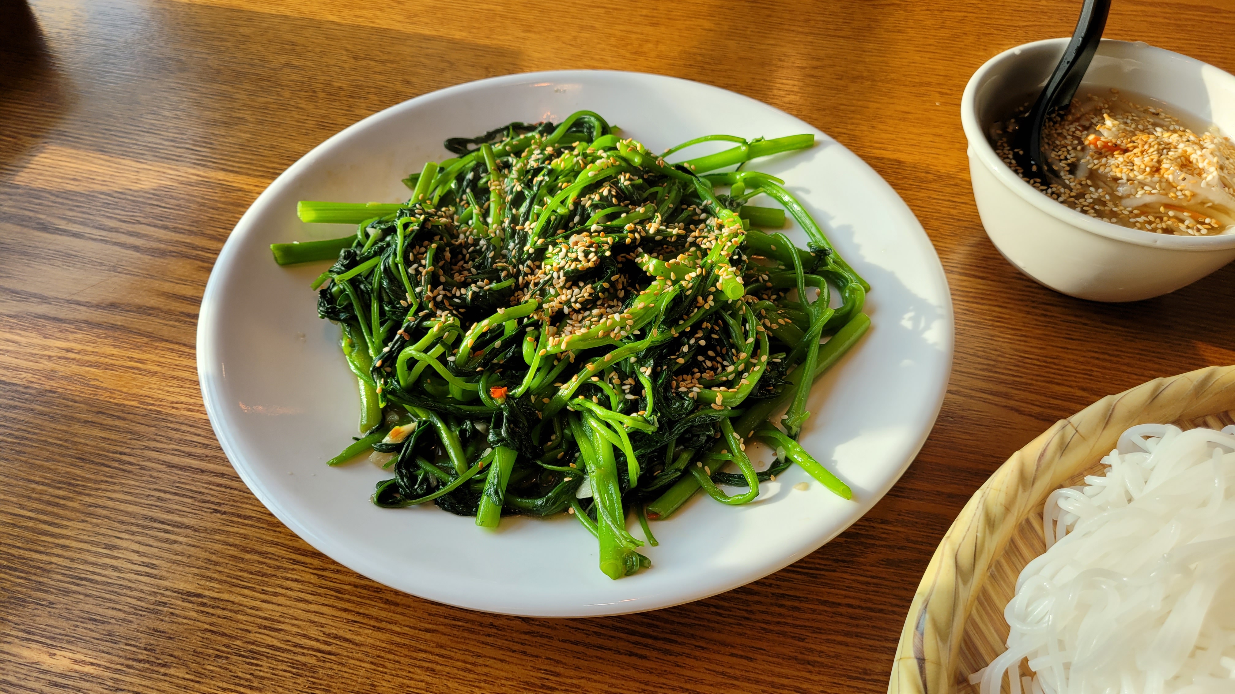 비주얼은 마치 시금치 볶음을 연상케 하는 비주얼이지만 한입 입에 넣어 씹어보면 볶았음에도 불구하고 흐물거리는 느낌보다는 아삭한 느낌이 강하다는 사실을 알게 된다.
