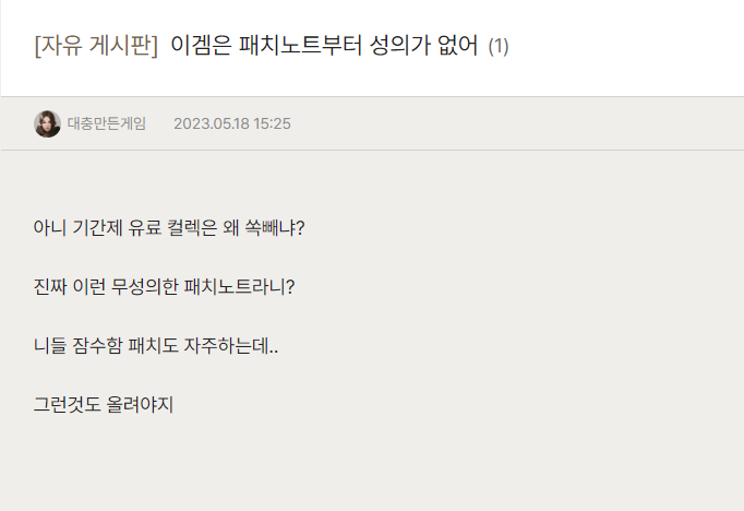 물론 불만족하는 일부 유저들이 있을 수 있고 플레이 잘만하고 있는 사람들도 많은데 왜 그렇게 모질게 대하느냐고 반문해볼 수도 있다.