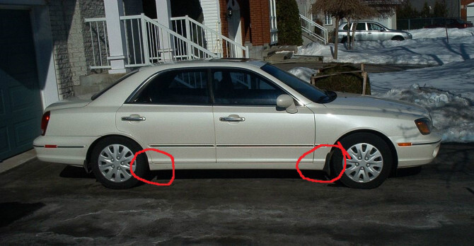 위 사진을 보면 사이드실 판금은 저 위치이며 자동차 바퀴와 가깝고 노면으로부터 각종 먼지와 여러 이물질이 항시 묻는 곳임을 단번에 알 수 있다.